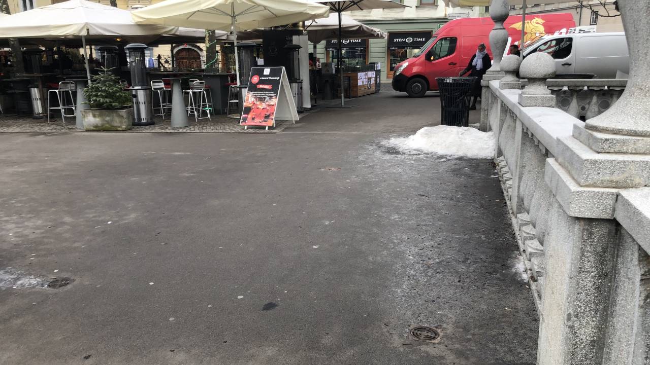 Če temperatura pade pod ledišče, medtem ko so tla še mokra, se bo na tlakovanih površinah zaradi ponovnega zmrzovanja verjetno oblikoval črni led.