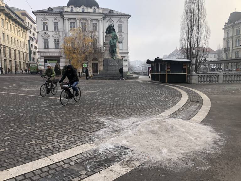 Če na cesti naletite na črni led, takoj prilagodite hitrost vožnje in preverite oprijem pnevmatik.