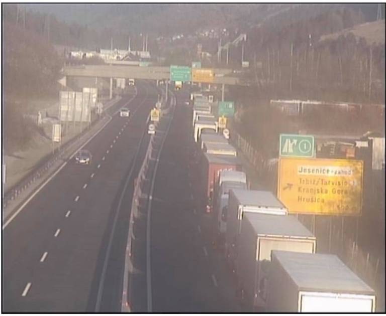 Zastoj je tudi na štajerski avtocesti pred prehodom Šentilj proti Avstriji, ki je dolg približno pet kilometrov. Vozila so na voznem in počasnem pasu.