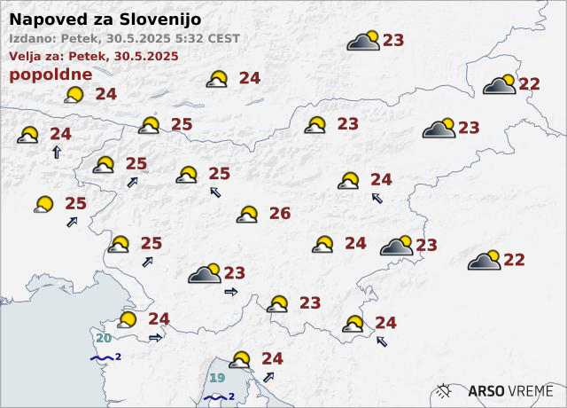 Najvišje dnevne temperature bodo od 22 do 26 stopinj Celzija.