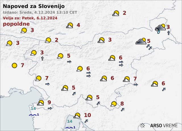 »Po nižinah bo verjetno rahlo deževalo, a morda kje, predvsem na severovzhodu in zahodu, se lahko sneg vsuje skoraj do nižin ali do višjih gričev. A še vedno govorimo o res majhnih količinah,« napoveduje Žagar. Najnižje jutranje temperatur bodo od -8 do -2, ob morju okoli ničle, najvišje dnevne pa od dve do osem osem stopinj celzija.