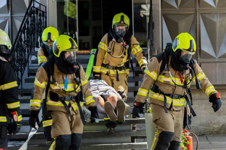 Obiskovalci vaje so si lahko od blizu ogledali delo vseh reševalnih enot na simulirani vaji požara in reševanja na objektu upravne stavbe, v katerem je ostalo ujetih 20 oseb.
