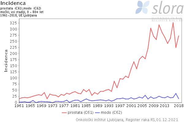 Tako smo v Ljubljani leta 2000 potrdili že 102 primera raka prostate letno, leta 2010 258 primerov, zadnji dostopni podatki za leto 2018 pa kažejo, da smo v Ljubljani potrdili 272 primerov.
