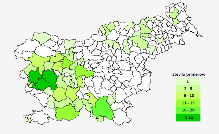 33 primerov so potrdili v gorenjski regiji, 12 v podravski regiji in 9 v koroški regiji. Po štiri primere so zaznali v pomurski in savinjski regiji ter dva primera v obalno-kraški.