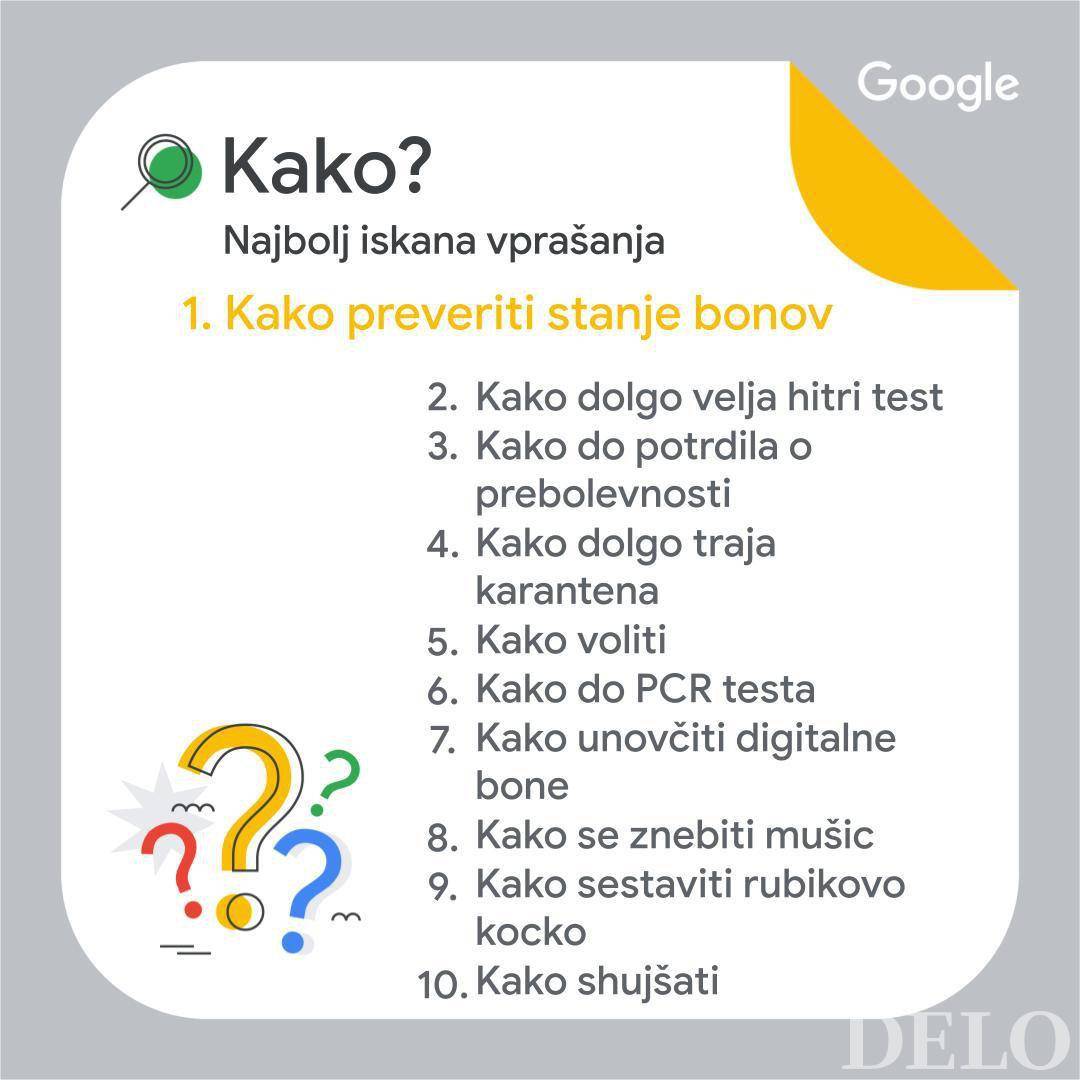 Zanimiv pa je tudi vpogled v najbolj iskana vprašanja Slovencev. Letošnje leto smo tako največkrat iskali odgovore na vprašanje, kako preveriti stanje bonov.