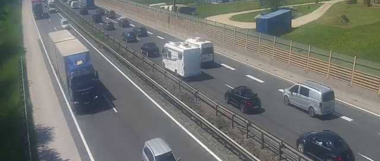Na primorski avtocesti nastajajo kolone. Gneča se vije od Kosez do Kozarij in naprej proti Brezovici, kjer vozniki čakajo tudi do 25 minut. Dodatne zamude povzroča prometna nesreča med Kozarjami in Brezovico, ki je zaprla počasni pas.