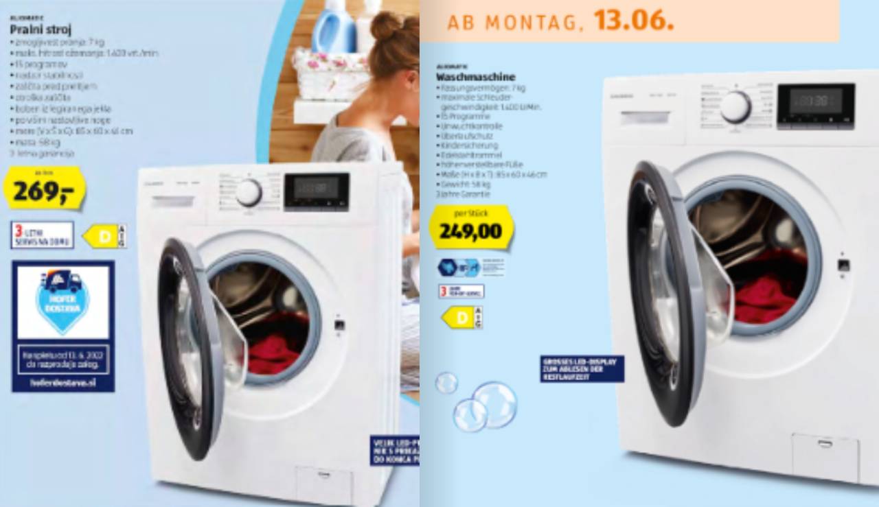 Pralni stroj se na slovenskem tržišču prodaja za 269 evrov, v Avstriji identičen sesalnik stane 249 evrov. Razlika v ceni je tudi pri leseni vrtni lopi. V Sloveniji ta stane 799 evrov, medtem ko je treba v Avstriji za njo odšteti 749 evrov.