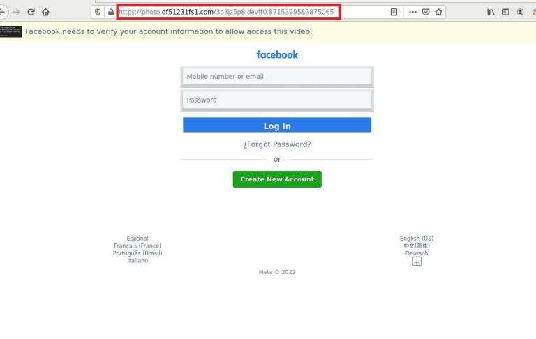 Klik na povezavo vas namreč preusmeri na lažni prijavni obrazec, kjer morate vnesti podatke za dostop do Facebook profila. S tem svoje prijavne podatke dejansko posredujete goljufom.