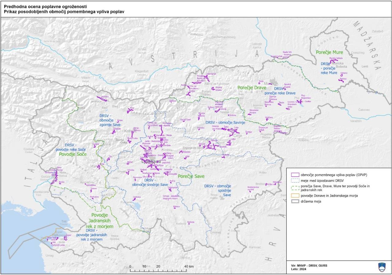 Dokument prinaša nove analize in posodobljene podatke o poplavni ogroženosti ter določa 104 območja pomembnega vpliva poplav – to so kraji, kjer bi lahko poplave povzročile največjo škodo.