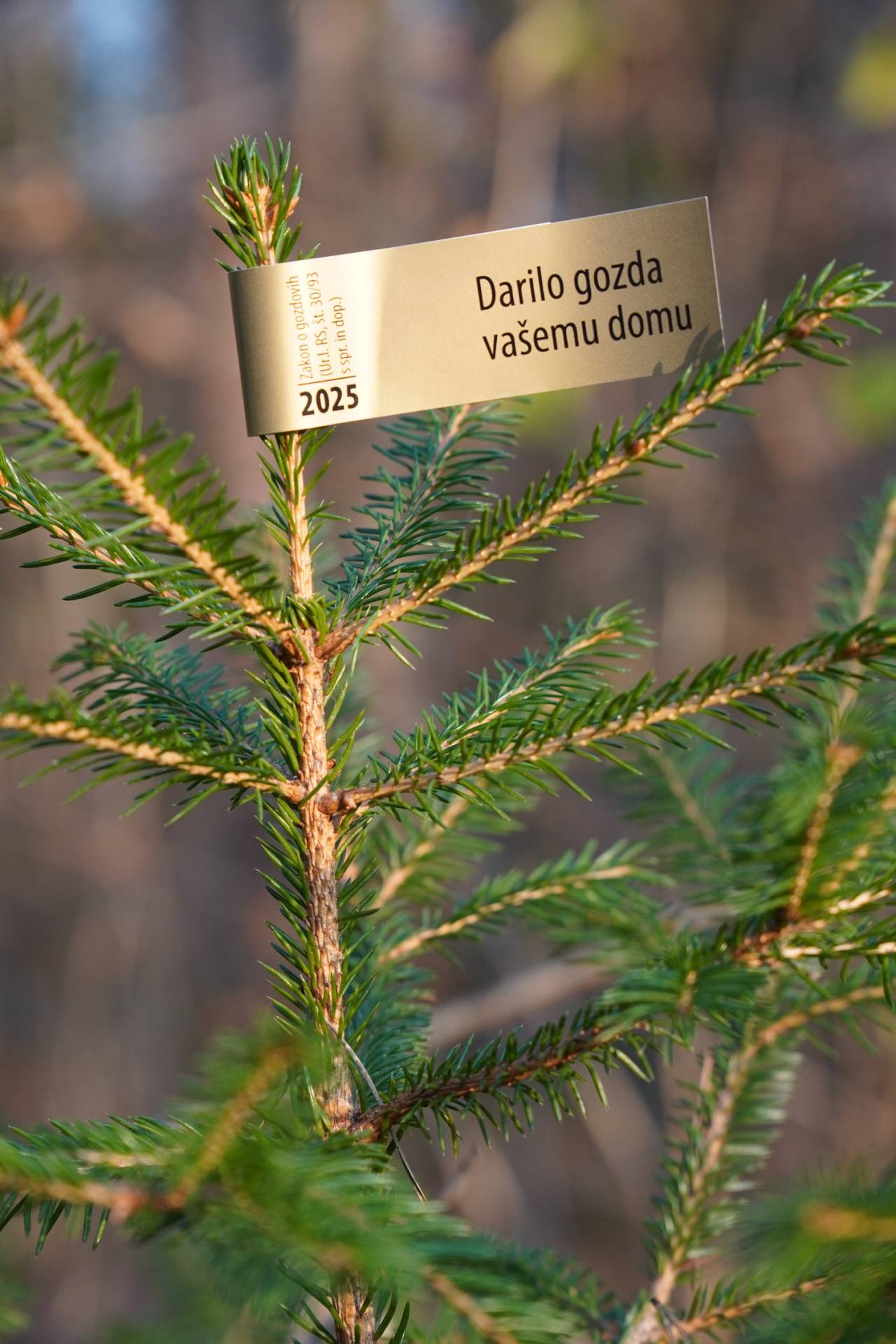 Kot so pojasnili v Zavodu za gozdove Slovenije, so z zlato nalepko z napisom Darilo gozda vašemu domu, ki jo izdaja zavod in je letos prvič ne glede na število dreves brezplačna, drevesca označena med prevozi in prodajo. Nalepka zagotavlja, da so drevesca pridobljena trajnostno in strokovno ter da kupec podpira skrb za slovenske gozdove.