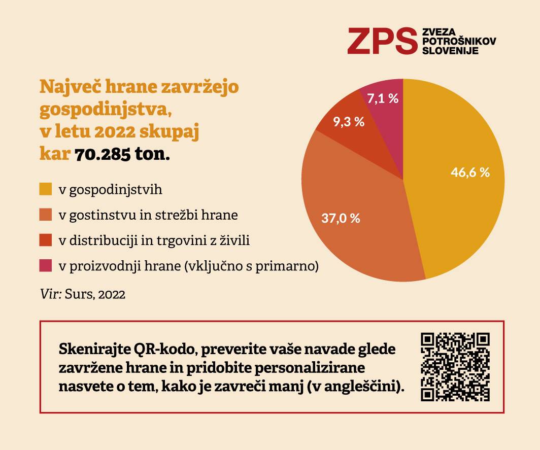 Statistika je pokazala, da je Slovenec v letu 2022 v povprečju zavrgel 72 kilogramov hrane. Evropski svet za informiranje o hrani je v okviru programa Evropske unije EU4Health raziskoval, kakšne so razlike odnosa ljudi do zavržene hrane po kar osmih državah Evropske unije.