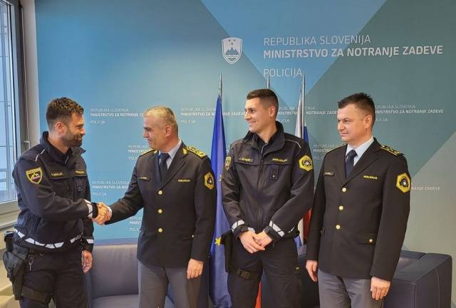 Pogumna policista Boštjan Zemljič in Žan Hlis sta moškemu urno priskočila na pomoč in mu z oživljanjem rešila življenje.