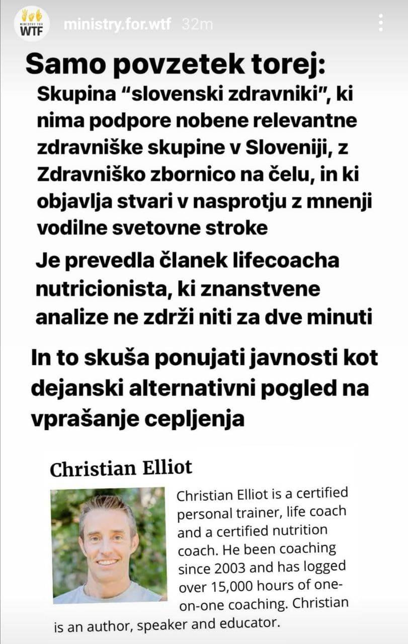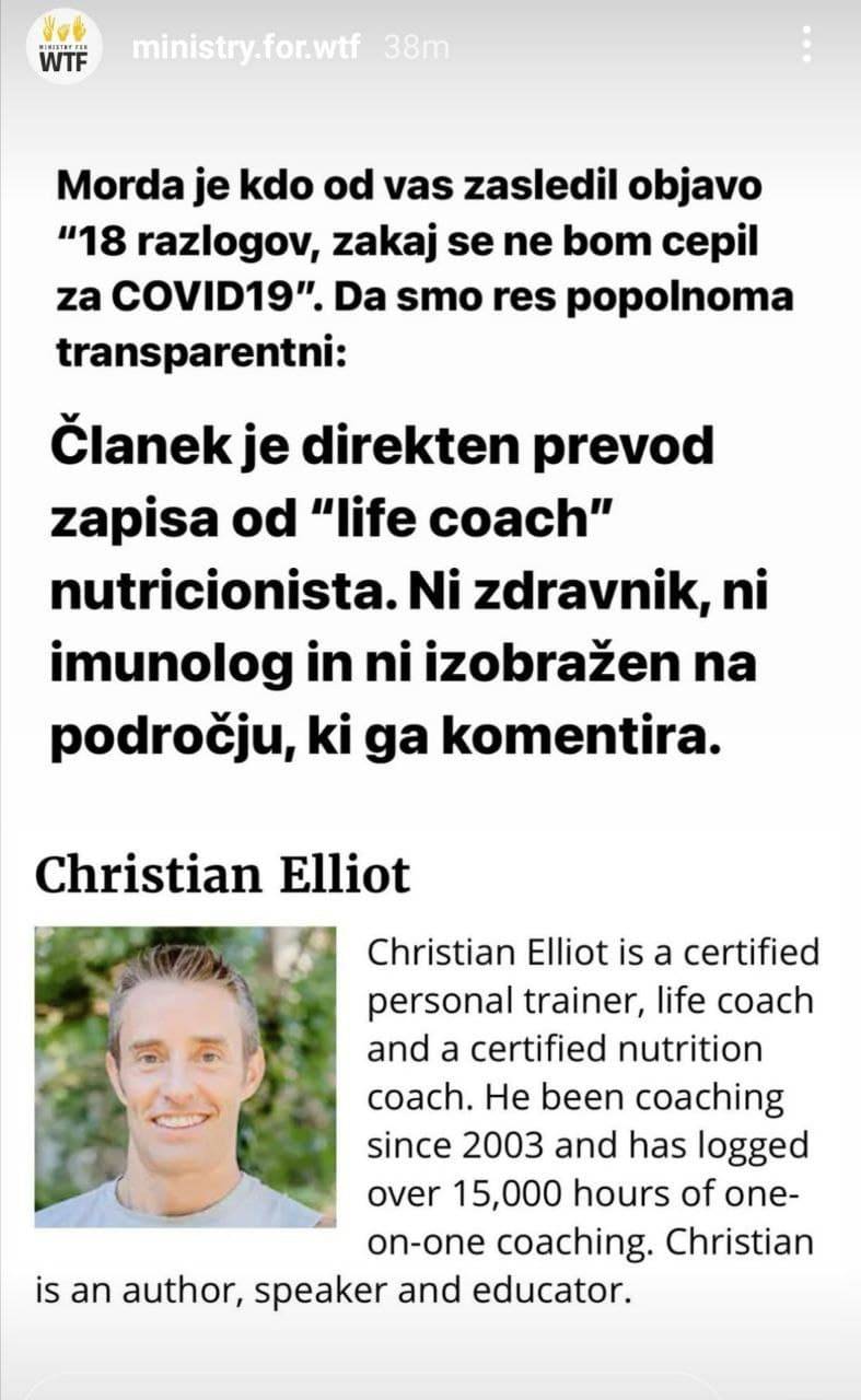 Slovenski infektolog David Zupančič je nestrinjanje s člankom izrazil na svojem Instagram profilu, kjer je izpostavil, da članek nima nobenega znanstvenega argumenta.