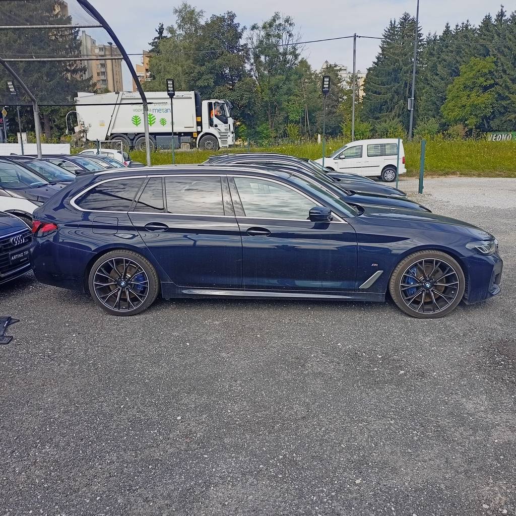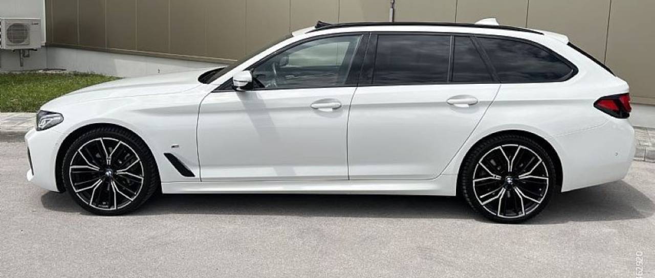 Prvi je BMW 530 TOURING/ix Drive AUT, ccm 1998, kW 185, letnik 2021, bele barve, notranjost ima oblečeno v rjavo usnje, ima sončno streho. Število prevoženih kilometrov po števcu je 65 600, ima opremo 'M' in en ključ.