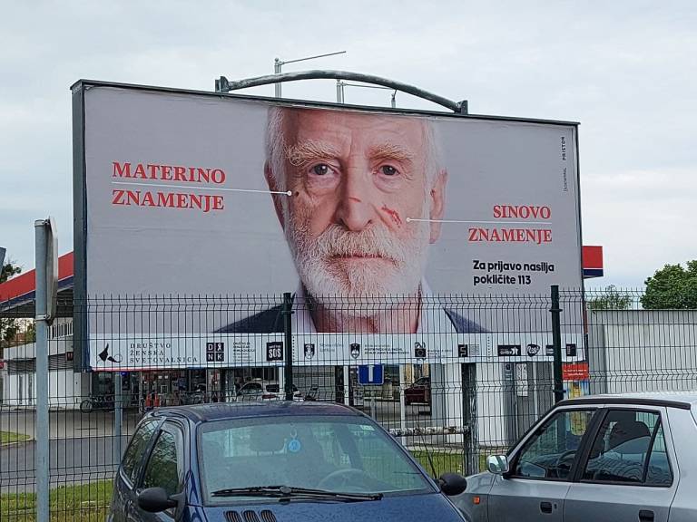 Plakat je le del kampanje 'Znamenje', za katero stojijo nevladne organizacije društvo Ženska svetovalnica, Društvo za nenasilno komunikacijo in Društvo SOS telefon.
