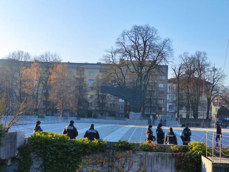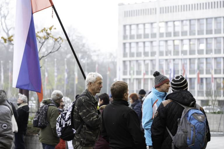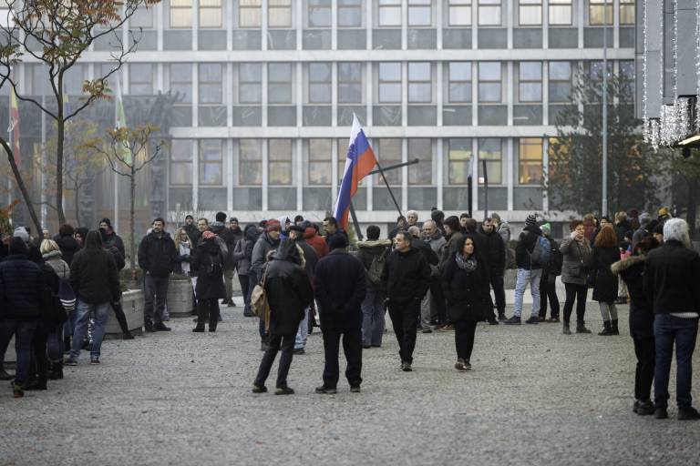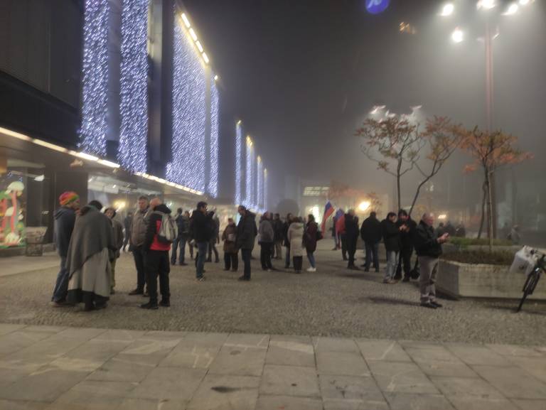 14.50 - Na Trgu republike je nekaj deset protestnikov.