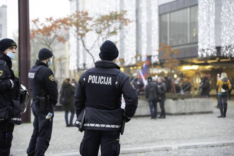 15.25 - Policisti opozarjajo ljudi, naj stopijo bolj narazen.