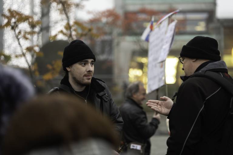 17.50 - Posamezniki vztrajajo na Trgu republike, a tokratni protesti minevajo brez govorov in »sprehoda po mestu«, protestniki klepetajo.
