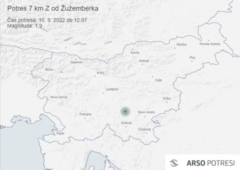 Danes ob 12.07 so seizmografi državne mreže potresnih opazovalnic zabeležili potres magnitude 1,9 v bližini Žužemberka, poročajo na Agenciji Republike Slovenije za okolje.
