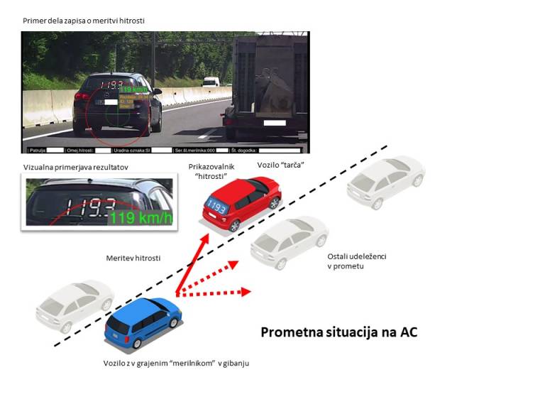 Vozilo so v tem primeru uporabili za tarčo merilnika hitrosti nove generacije, ki omogoča meritve hitrosti vozil ostalih udeležencev v prometu iz vozila v gibanju.
