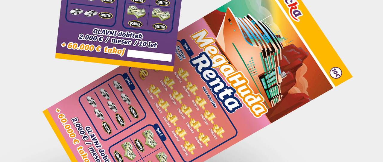 V bogati ponudbi iger Loterije Slovenije najdete tudi srečki Huda Renta in Mega Huda Renta, s katerima si lahko poleg enkratnega zneska pripraskate tudi mesečno rento za naslednjih 10 let.