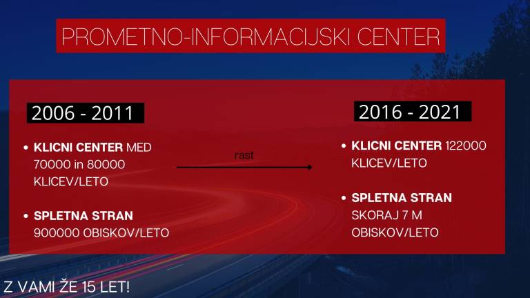 Mineva 15 let od ustanovitve Prometno-informacijskega centra, centra, ki zagotavlja enotno in enovito raven informacij o stanju in prometu na vseh državnih cestah v Sloveniji.