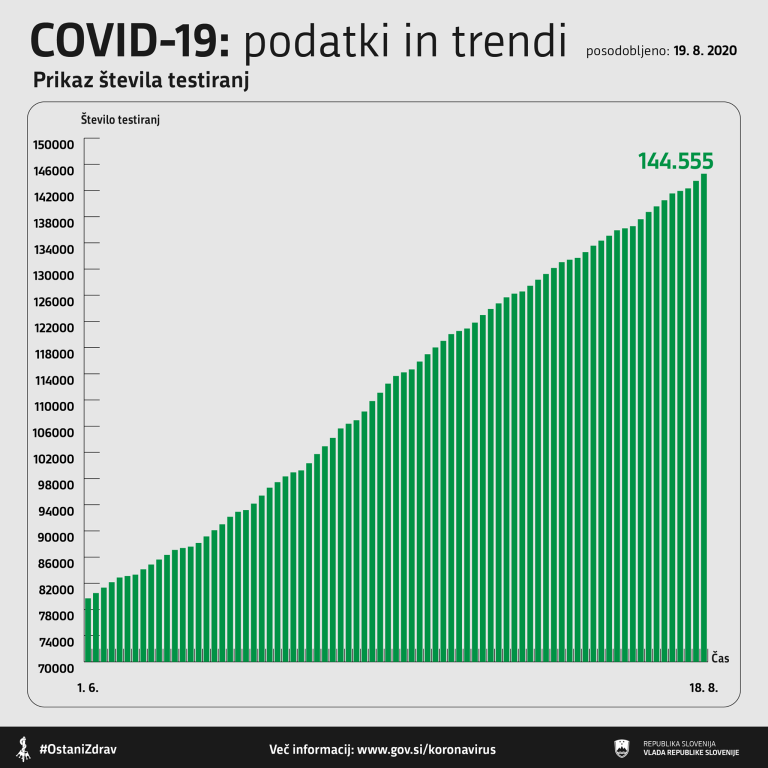 Z Vlade Republike Slovenije so sporočili sveže podatke o trendu obolelosti s koronavirusom v Sloveniji.