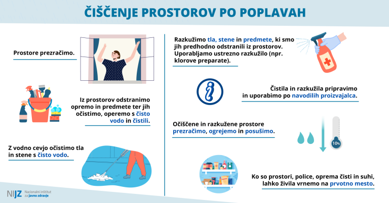 Obnova in čiščenje poplavljenih prostorov pa prinašata izzive in tveganja za zdravje prebivalcev. Zavedajoč se teh nevarnosti, je Nacionalni inštitut za javno zdravje pripravil pomembne in praktične smernice, kako poskrbeti za svoje zdravje med čiščenjem poplavljenih prostorov.