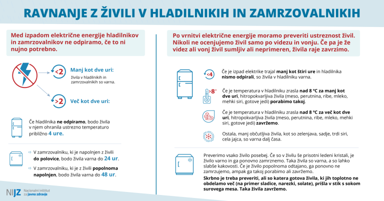 Na Nacionalnem inštitutu za javno zdravje pa poudarjajo, da vsekakor zavržemo živila, ki so prišla v stik s poplavno vodo, živila, ki vsebujejo tujke, plesniva živila, pločevinaste konzerve z živili, ki so poškodovane, ter živila v poškodovani ali polomljeni stekleni embalaži.