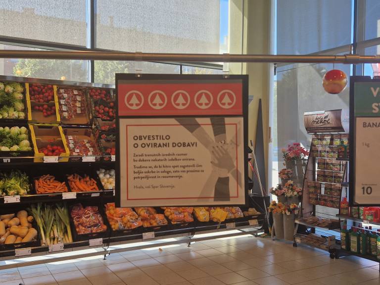 Tudi nekaj slovenskih trgovcev je na vhodih v svoje trgovine opozarjalo, da nekateri izdelki niso dobavljivi. Vse večje trgovce, ki imajo trgovine po Sloveniji, smo povprašali, kje se v zadnjem času pojavljajo težave v dobavni verigi.