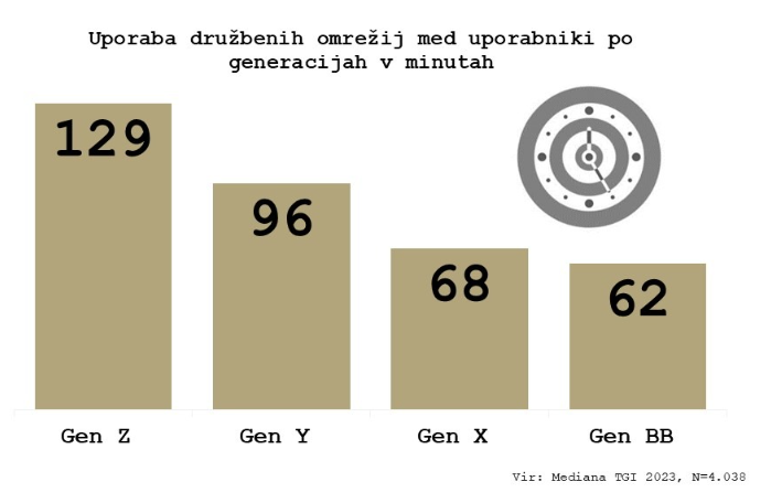 Največ časa na Tiktoku preživi generacija Z, in sicer več kot dve uri dnevno, dobro uro pa tudi uporabniki, ki pripadajo generaciji babyboom.