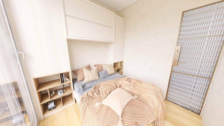 »Želela sem ustvariti kose pohištva, ki bodo poživeli prostor in ga dodatno obogatili, hkrati pa ne nasičili,« pojasnjuje: »Izbrala sem barvno paleto pastelnih tonov in naravnega lesa.«
