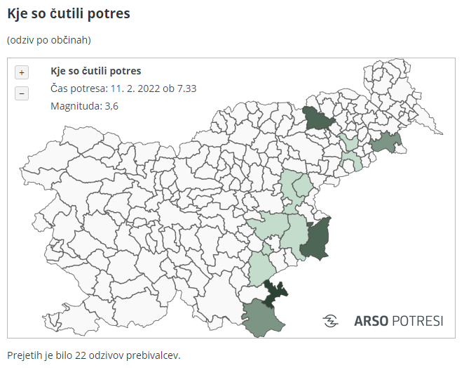 Seizmografi državne mreže potresnih opazovalnic so v danes, ob 7.33, zabeležili potresni sunek, magnitude 3,6.