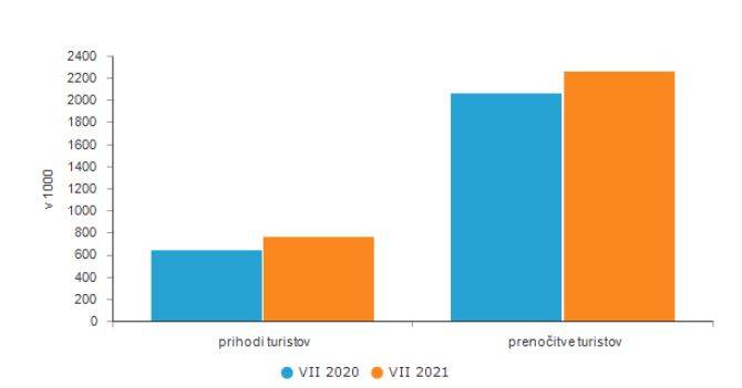 »V prvih sedmih mesecih leta 2021 je bilo v turističnih nastanitvenih obratih po Sloveniji zabeleženih več kot 1,3 milijona prihodov turistov. Skupaj z domačimi turisti je bilo skupno skoraj 4 milijone prenočitev.«