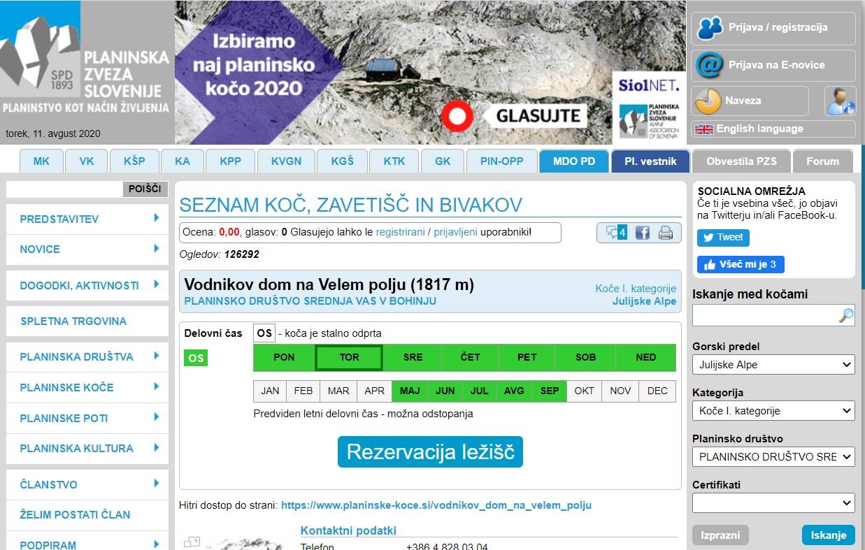 »Za uporabnika je bistvena prednost, da lahko v rezervacijskem sistemu vidi stopnjo zasedenosti ležišč za posamezen časovni termin. Sistem je preveden v slovenščino in omogoča lažjo rezervacijo tudi za nočitve v tujih planinskih kočah. V Sloveniji se je v sistem priključilo nekaj bolj obljudenih koč. Spletno rezervacijo lahko opravite v Aljaževem domu, Domu Planika pod Triglavom, Koči na Planini pri Jezeru, Vodnikovem domu na Velem polju in Poštarskemu domu na Vršiču,« je še razložil Prašnikar.