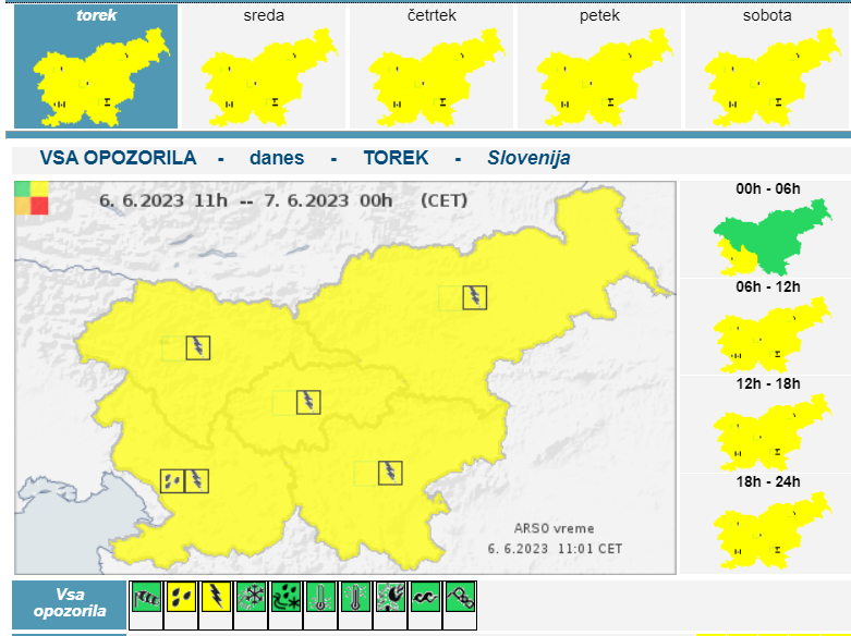 Dodali so, da bo muhasto vreme vztrajalo tudi v prihodnjih dneh. Zaradi močnejših padavin pa so vse do sobote izdali rumeno opozorilo za celotno Slovenijo.