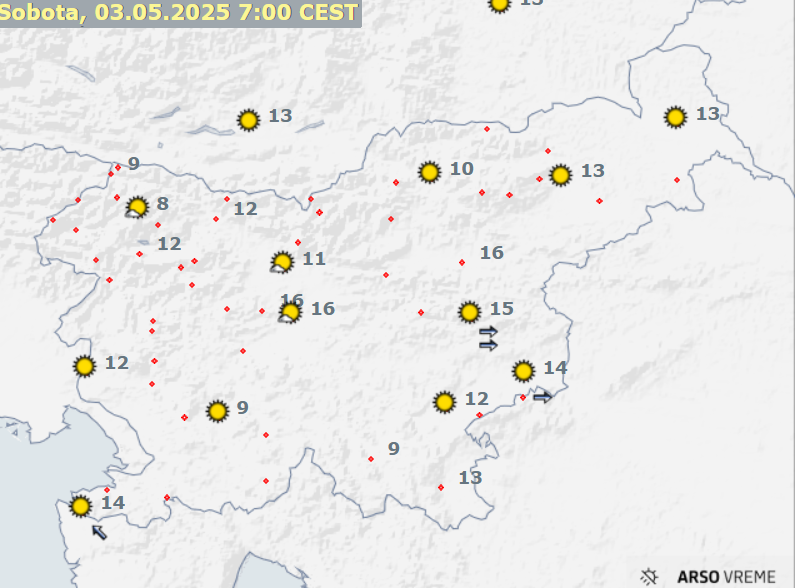 Najnižje jutranje temperature bodo od 8 do 14, ob morju okoli 16, najvišje dnevne od 20 do 25, na severozahodu okoli 18 stopinj Celzija.