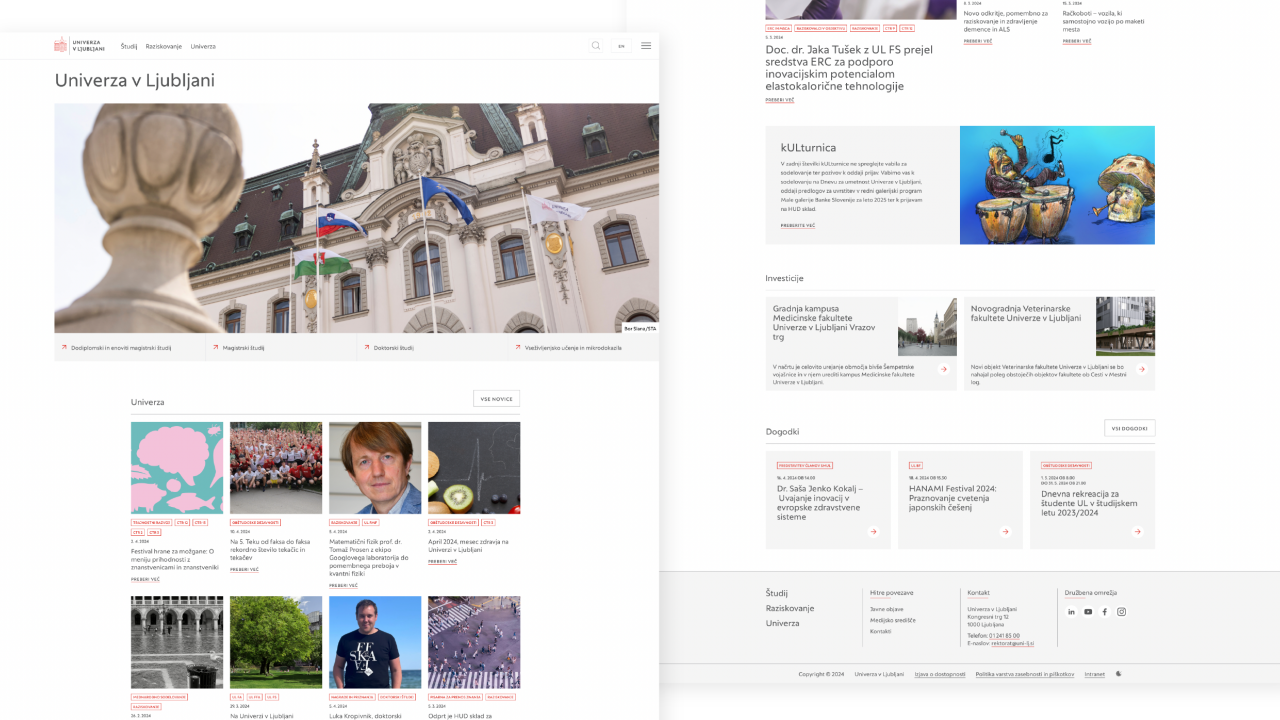 Hkrati pa novo spletišče omogoča še lažji dostop do informacij o izjemnih raziskovalnih dosežkih naših raziskovalk in raziskovalcev, pa tudi o številnih umetniških dogodkih, ki jih prirejamo na UL, ter dejavnostih študentk in študentov.