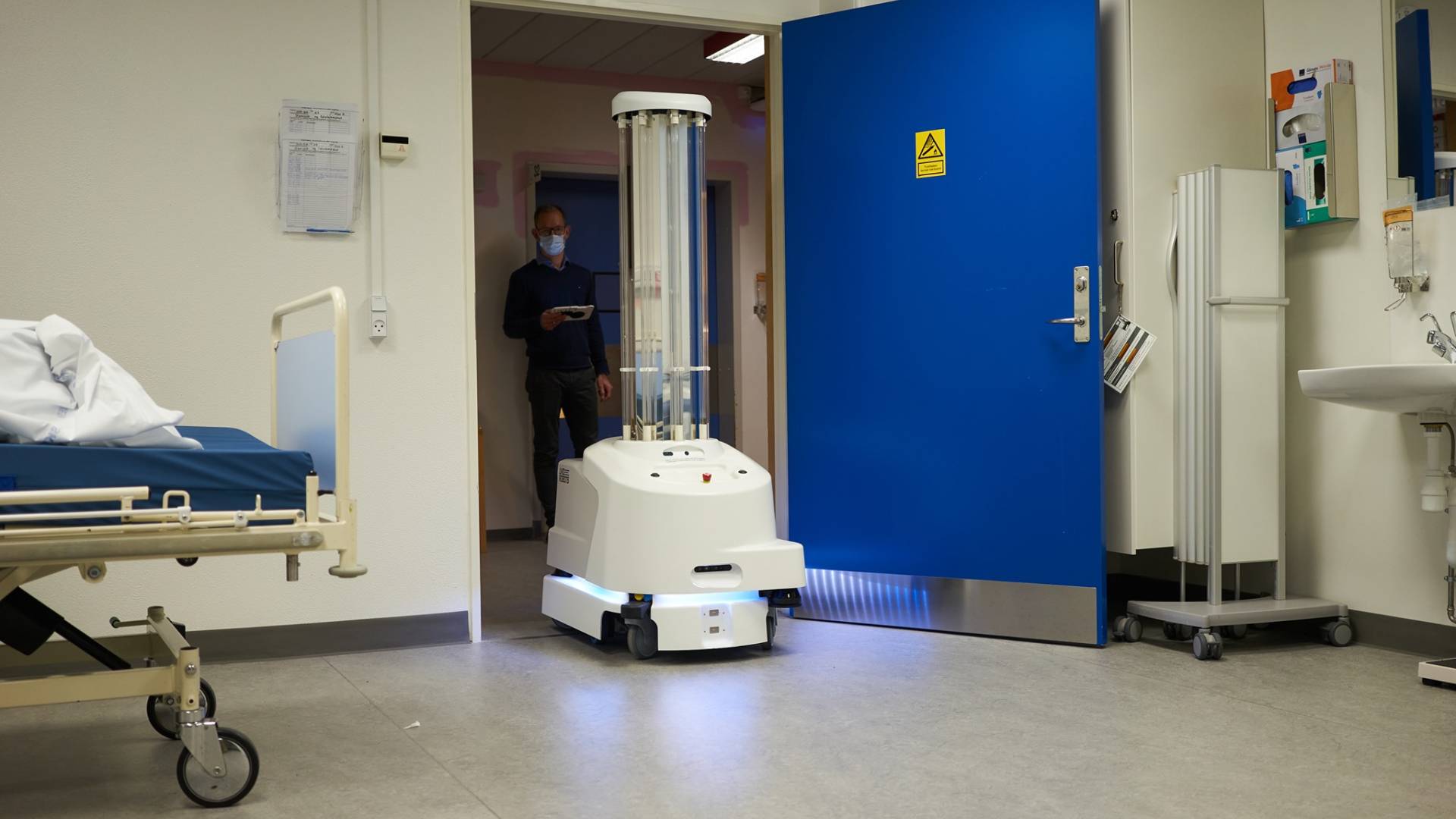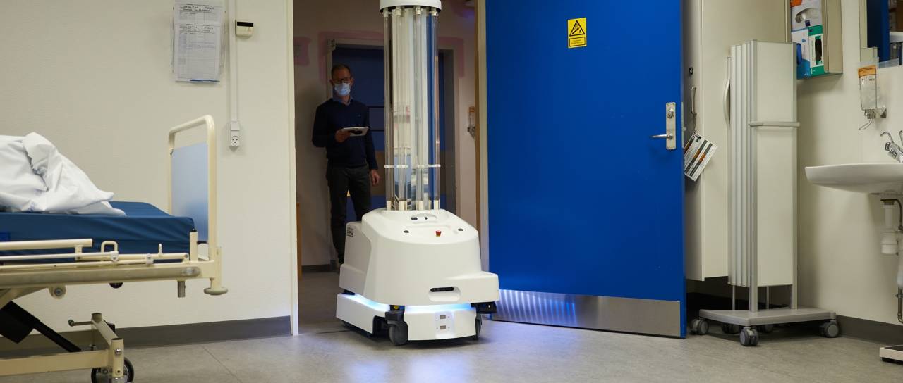Evropska komisija je bolnišnicam po Evropi razposlala prve pošiljke robotov, ki bolniške sobe z ultravijolično svetlobo razkužijo v desetih minutah.