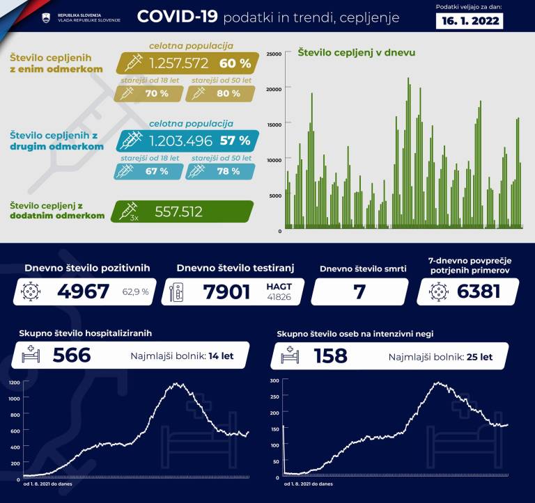 Trenutno je po podatkih Covid-19 Sledilnika v bolnišnicah hospitaliziranih 566 covidnih pacientov, od tega je 158 pacientov na intenzivni negi.