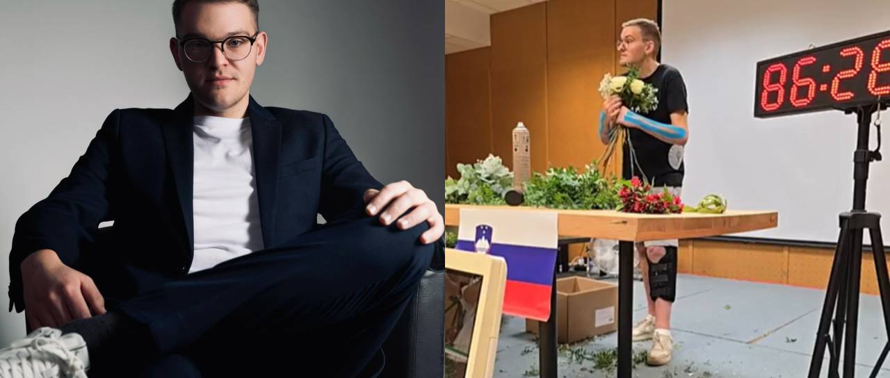 Koroški florist Žan Žolger je v prostorih MKC v Slovenj Gradcu ob 8. uri začel cvetlični maraton, v katerem namerava 24 ur izdelovati šopke in s tem postaviti Guinnessov rekord v izdelovanju šopkov.