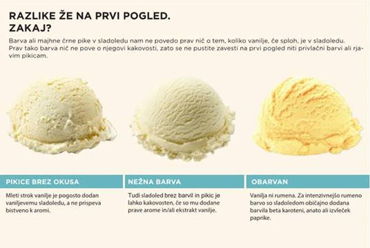 - Preverite spodaj, kaj pomenijo posamezne navedbe, ki jih najdemo na vaniljevih sladoledih: