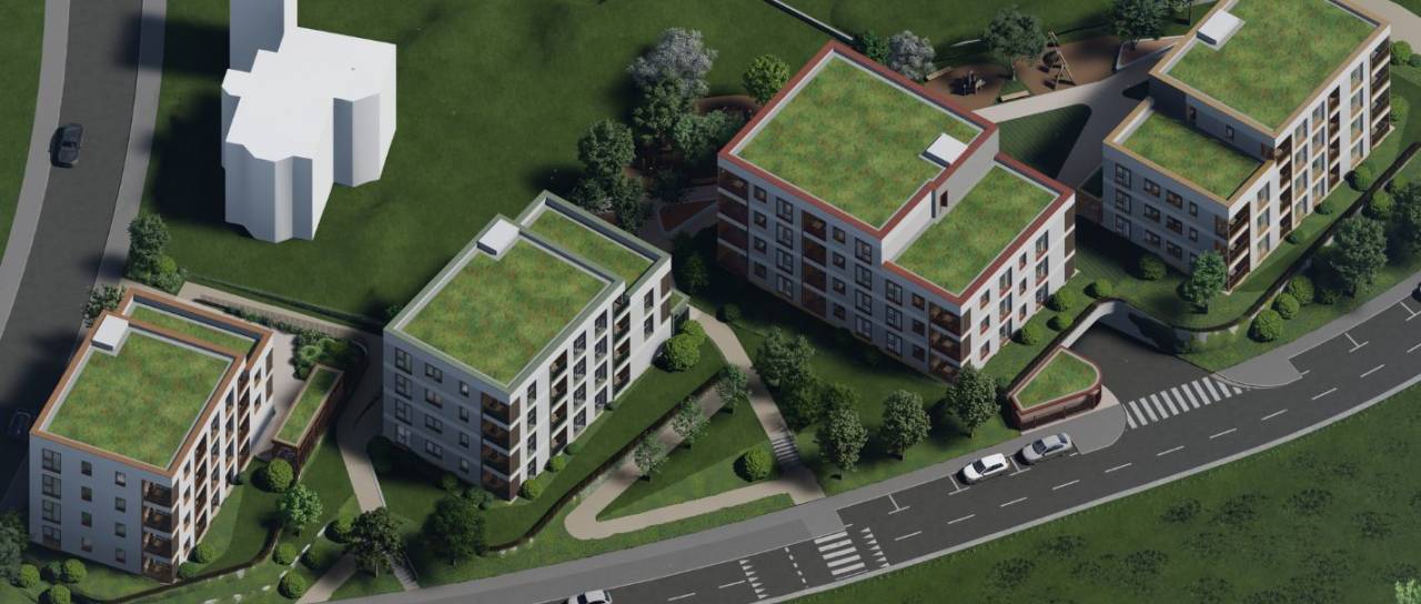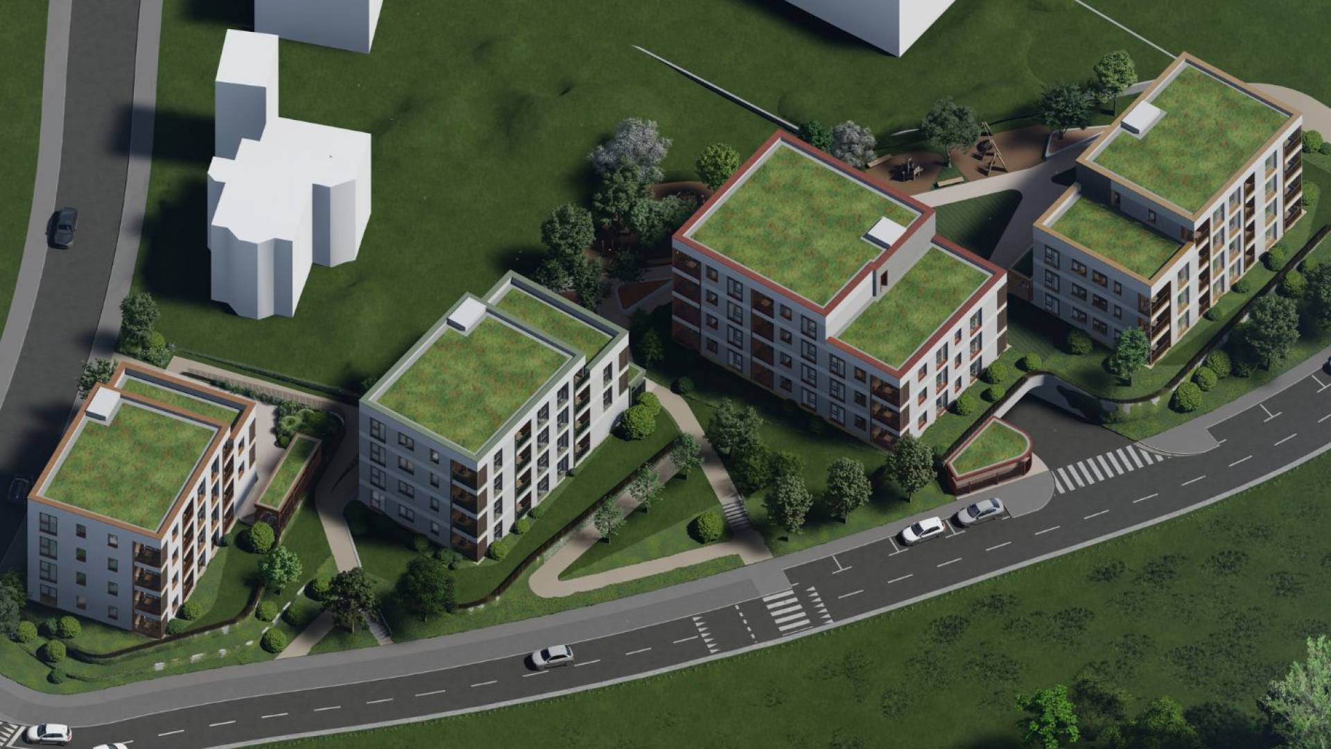 Stanovanjski sklad Republike Slovenije bo zgradil štiri večstanovanjske objekte s skupno podzemno garažo in zunanjimi bivalnimi površinami.