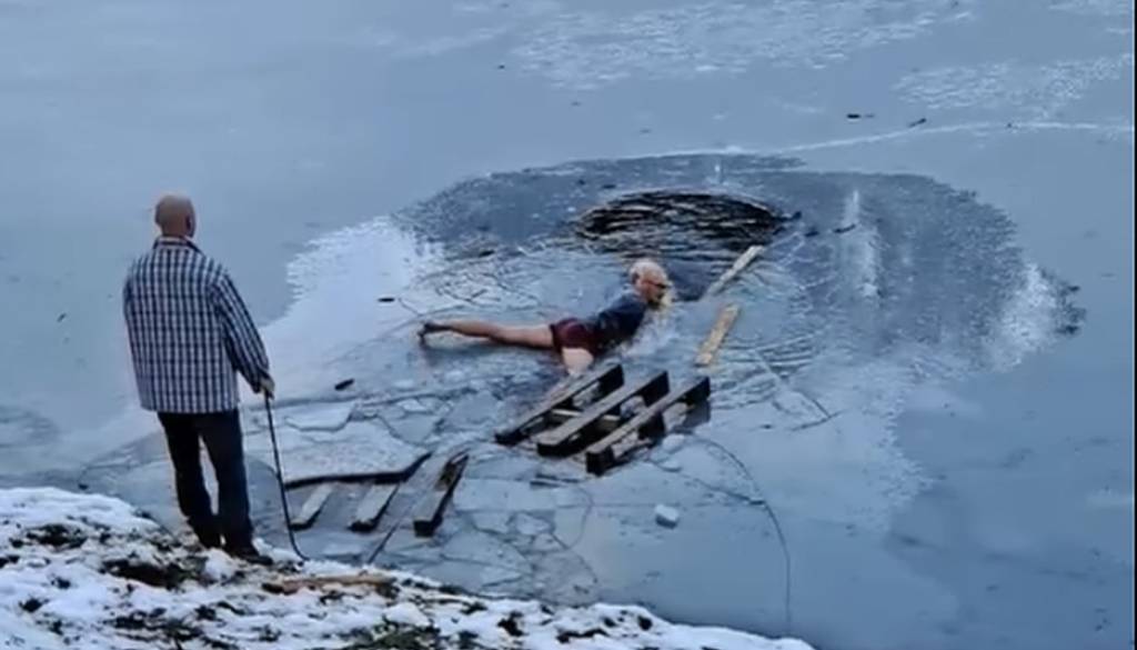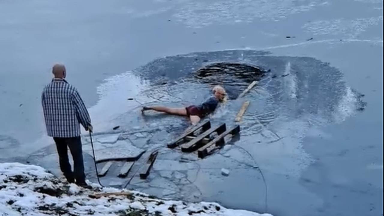 VIDEO: Bojan brez premisleka skočil v ledeno jezero in rešil utapljajočega psa