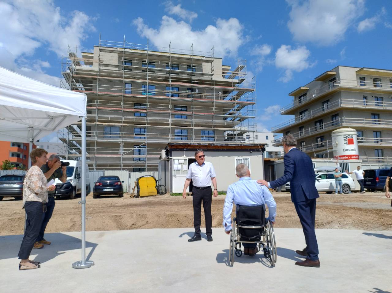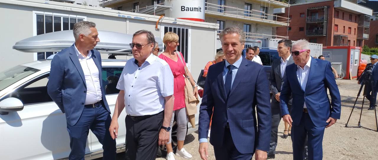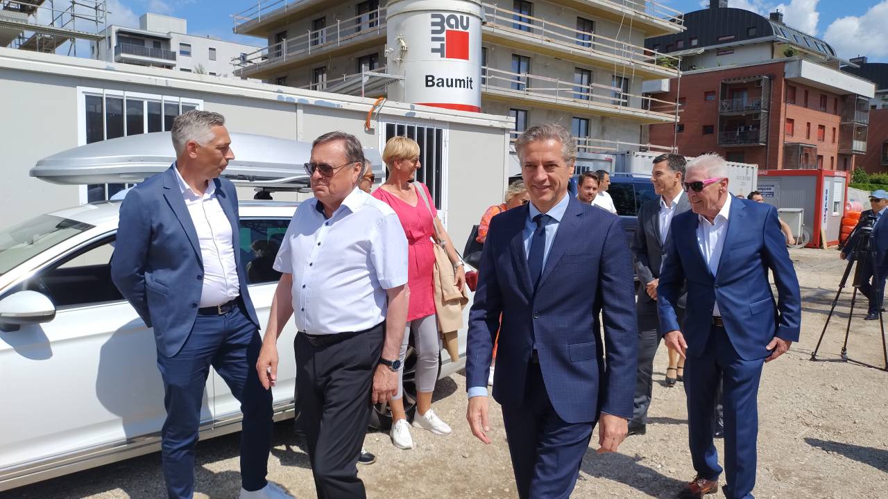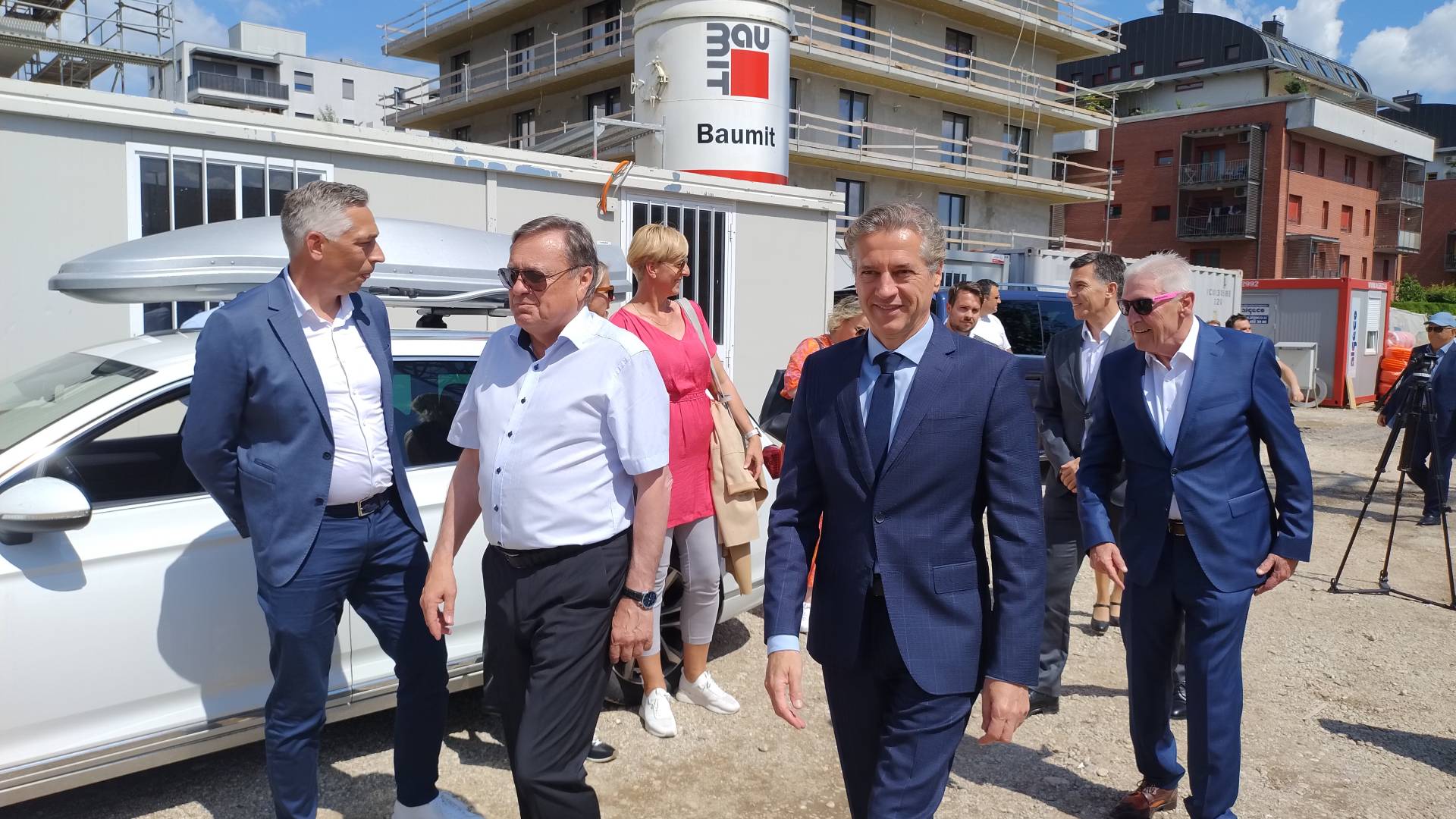 V žgočem popoldanskem soncu je zbrane medije, ekipo z državne ravni, podžupane in ekipa ljubljanske občine ter ekipa izvajalca in gradbince najprej nagovoril direktor javnega stanovanjskega sklada Mestna občina Ljubljana Sašo Rink, ki je povedal: