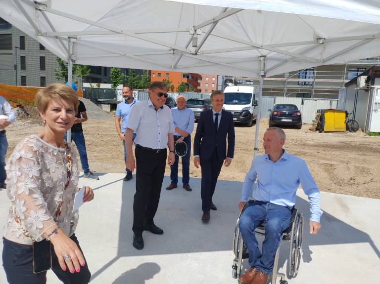 Predsednik vlade Robert Golob si je popoldan ogledal gradnjo novih neprofitnih stanovanj v Ljubljani in napovedal sistemsko financiranje gradnje javnih stanovanj.