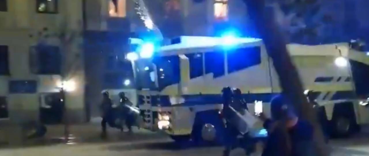 Policija je proti protestnikom uporabila tudi vodni top. Tega so nazadnje uporabili med protesti novembra leta 2012.