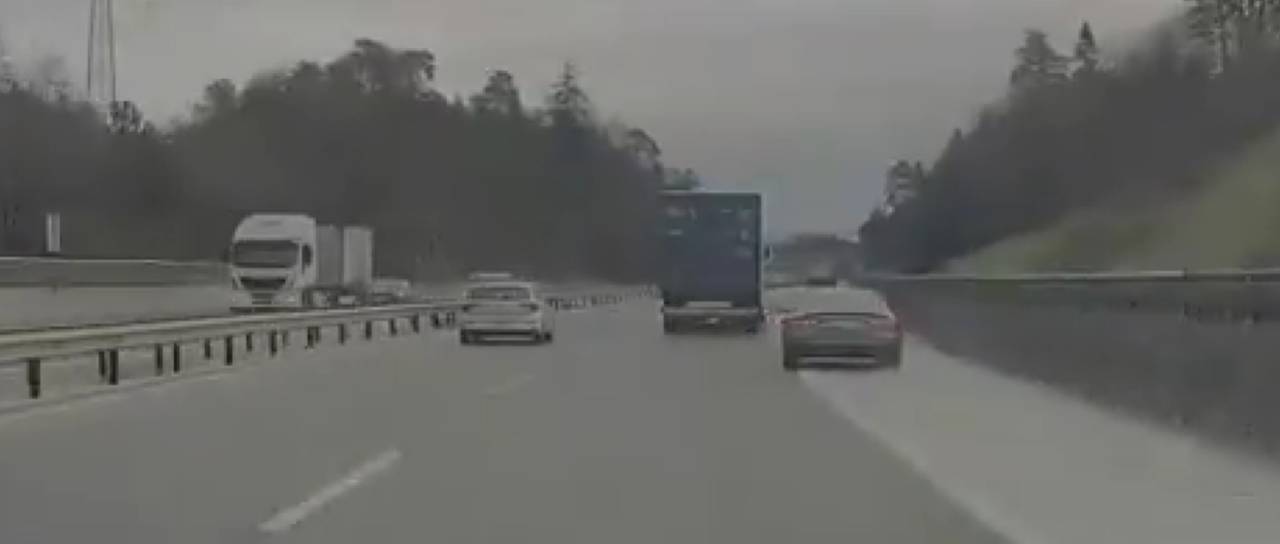 VIDEO: Nevarna vožnja na avtocesti, po odstavnem pasu prehiteval tovornjak