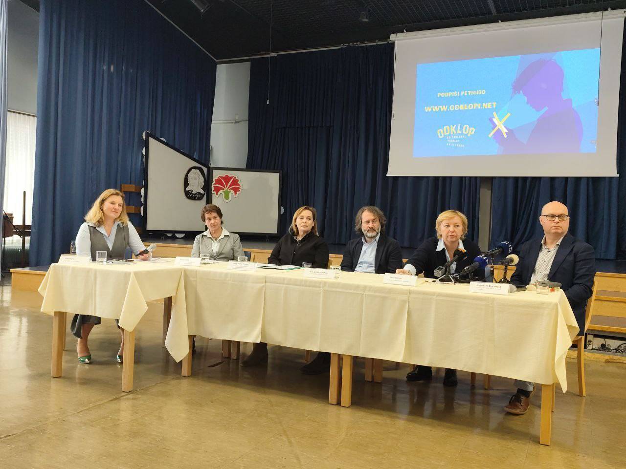 V dvorani osnovne šole so svoje poglede poleg pobudnice peticije Vlaste Juršak svoje poglede še predstavili Mojca Mihelič, Marko Pokorn, strokovni direktor Pediatrične klinike Univerzitetnega kliničnega centra Ljubljana, Darja Groznik, predsednica Zveze prijateljev mladine Slovenije ter Dan Podjed, antropolog, ki je nizal zanimive misli in lastne ugotovitve, pa tudi izsledke raziskave, ki je pokazala, da kar deset odstotkov ljudi pogleduje na svoje telefone med spolnimi odnosi, če takrat dobi potisno sporočilo.
