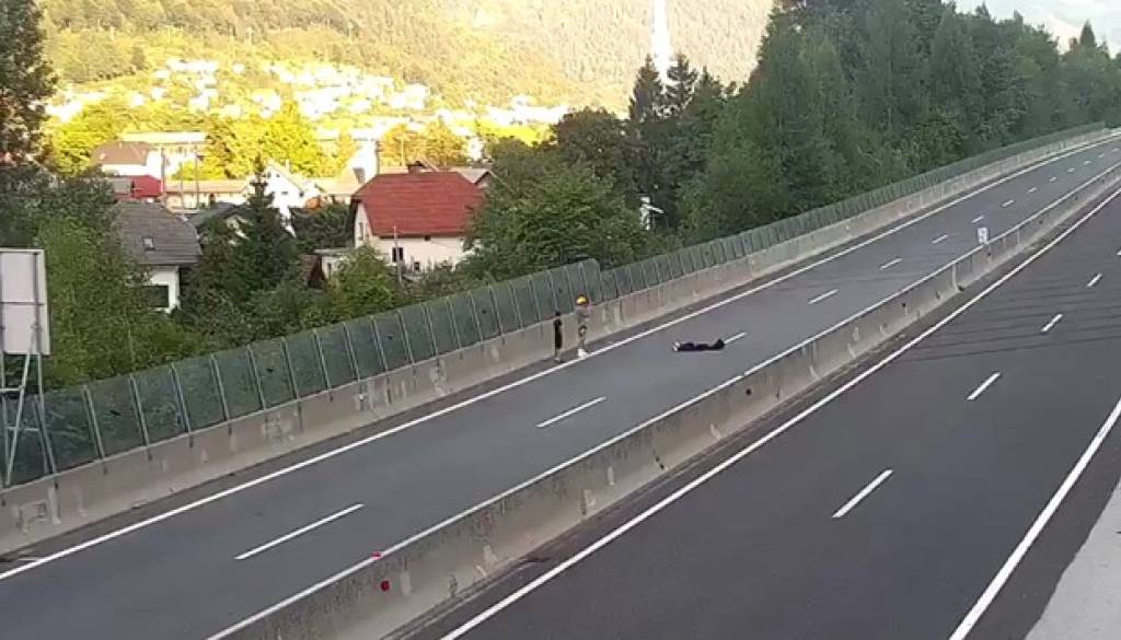 Iz posnetka je razvidno, da se trije mladi fantje najprej ob avtocesti sprehajajo, nato pa se eden uleže sredi avtoceste, medtem ko ga druga dva fotografirata in snemata.